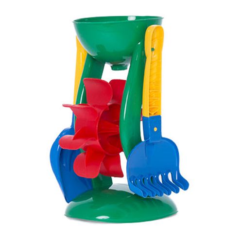 Zand/Watermolen Met hark en schep Afmeting 26,5 x 18 x17 cm. Gefabriceerd in de EU.